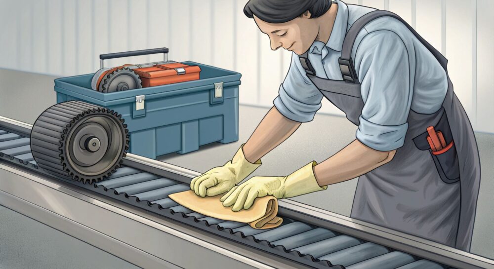 Для продления срока службы ремня также важно поддерживать чистоту в зоне его эксплуатации. Попадание пыли, грязи и других загрязнений может привести к ускоренному износу. Регулярная смазка также может быть необходима, в зависимости от типа ремня и условий его эксплуатации.