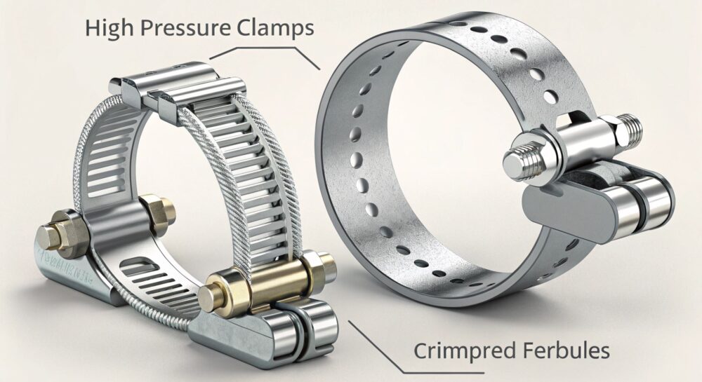 Сравнение силовых хомутов и обжимных втулок для РВД