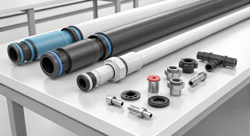 Полиамид (PA) характеризуется высокой прочностью и устойчивостью к высоким температурам, что делает его подходящим для использования в промышленных пневматических системах. Полиэтилен (PE) — это бюджетный вариант с хорошей химической стойкостью, часто используемый в менее требовательных приложениях.