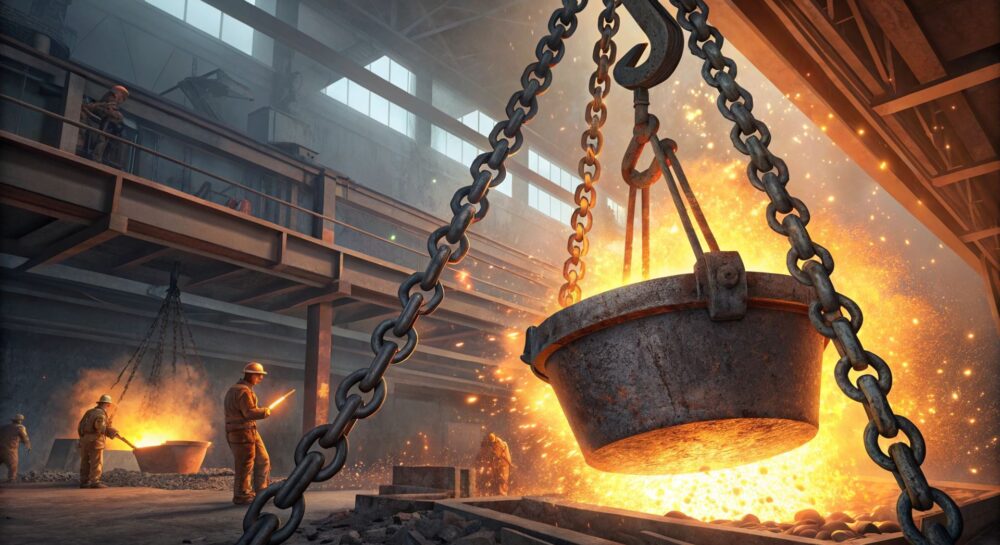 Работа с расплавленным металлом — процесс, требующий максимальной осторожности и применения специализированного оборудования. Одним из критически важных элементов в этом процессе являются цепные стропы, предназначенные для безопасного подъема и перемещения тяжелых ковшей с горячей массой. От их надежности напрямую зависит безопасность персонала, сохранность оборудования и бесперебойность производственного цикла.