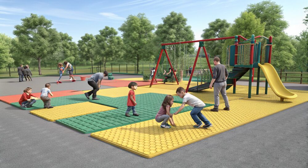 В детских площадках резиновая плитка используется для создания безопасных и комфортных поверхностей для детей, снижая риск травм и обеспечивая хорошую сцепку. Она также используется для создания игровых зон и других площадок, где требуется высокая прочность и сцепка. Например, резиновая плитка толщиной 10 мм может быть использована для покрытия площадок для игр, обеспечивая мягкую и амортизирующую поверхность для детей.