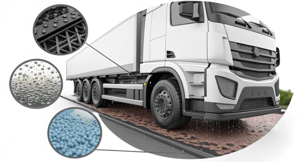 Ключевая особенность заключается в том, что крошка не просто наполняет смесь, но и взаимодействует с автозащитными пленками, усиливающими прочность конструкции. Благодаря этому комбинация становится более устойчивой к механическим нагрузкам и коррозии, что особенно важно для грузовых автомобилей, эксплуатирующихся в сложных климатических условиях.