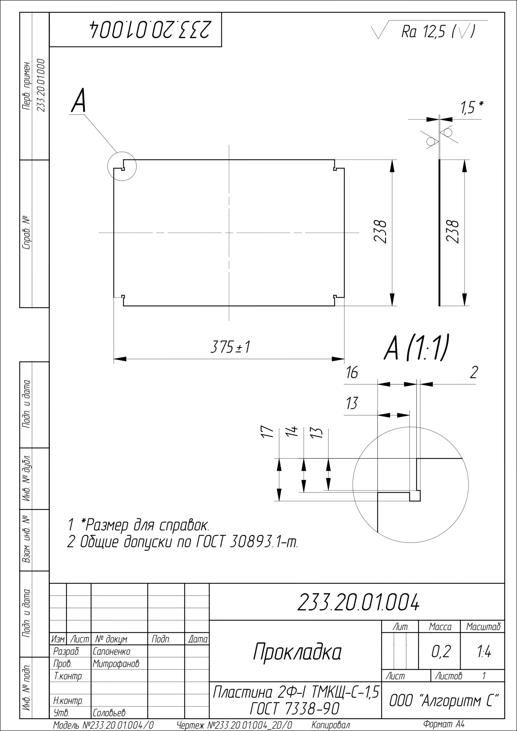 * Номер чертежа: 233.20.01.004