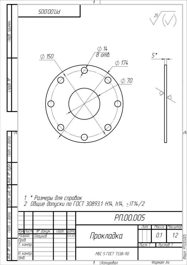 * Соответствие чертежу РП.00.005